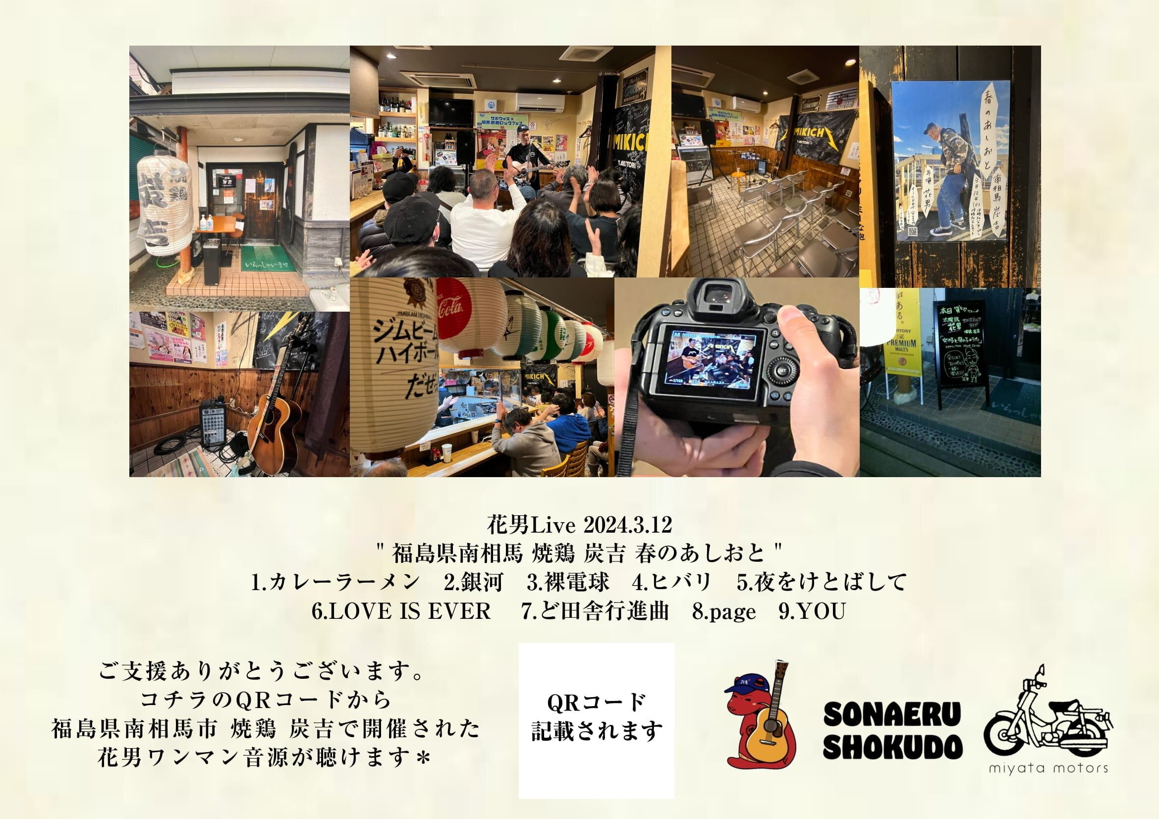 自分ができる事の全力は、やはり音楽しかないので、昨年、炭吉でLiveさせていただいた時のLive音源を、支援アイテムとさせていただきました。